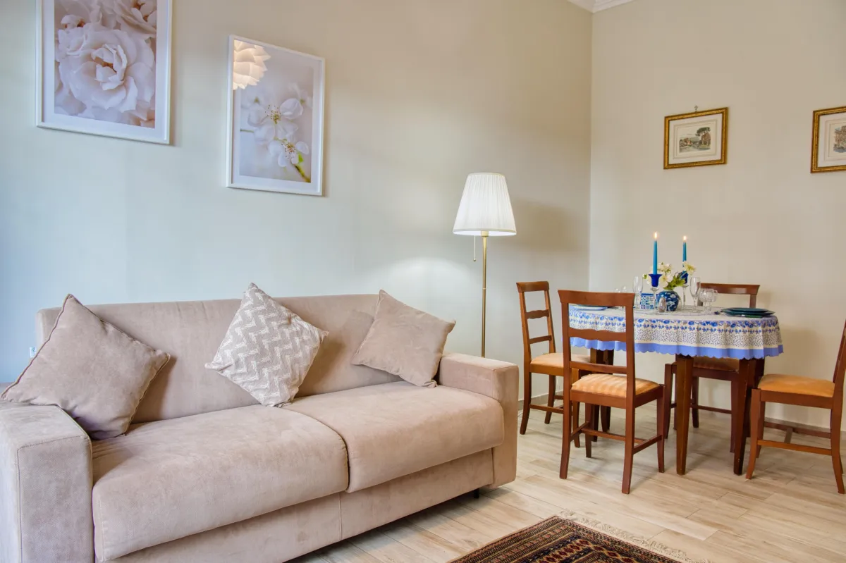Camera matrimoniale con armadio capiente + salotto con comodo divano letto. Smart TV sia in camera che in soggiorno.