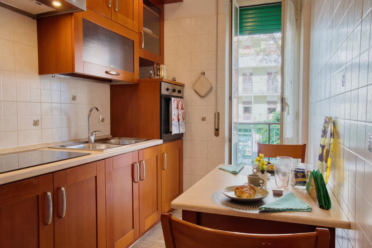 Piano cottura, forno, frigorifero, macchina del caffè, tavolo da pranzo e tutti gli utensili. Ideale per colazioni o cene in casa.
